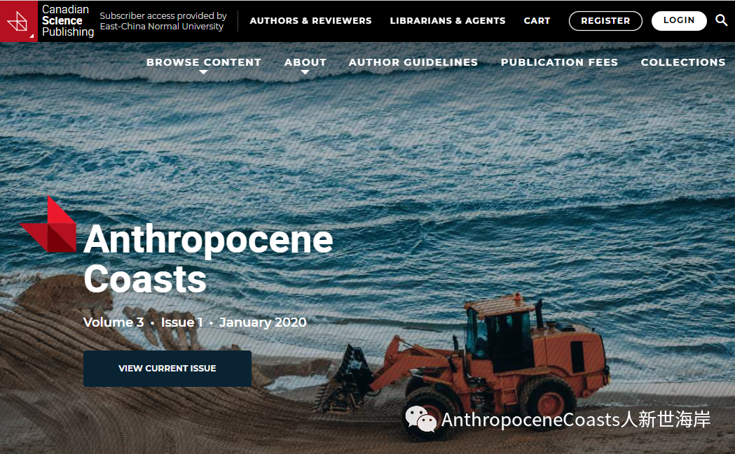 The “Anthropocene” is the period during which human activities have had a marked environmental impact on the Earth, and “Coasts” embraces all aspects of the land-sea interface. On the basis of traditional oceanography, with the international emerging frontier concepts of Anthropocene as the theme background, and the national demand of sustainable development of coastal economy and society, East China Normal University, together with Canadian Science Publishing, initiated the establishment of the international open-access journal Anthropocene Coasts. The establishment of this journal fills in the blank of publishing academic journals under the conceptual framework of the Anthropocene Coasts, which integrates traditional advantageous disciplines.